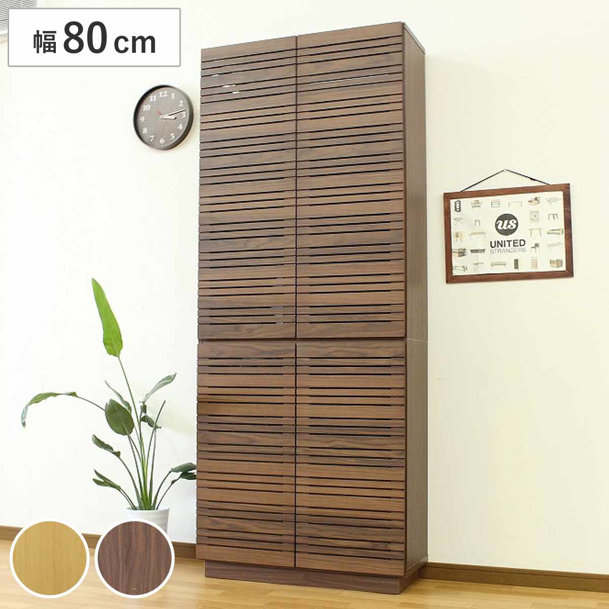 ■スリムキャビネット 幅80cm 背面化粧 天然木 ( キャビネット 奥行スリム リビング収納 棚 ラック 可動棚 木製 リビングボード 食器棚 ナ
