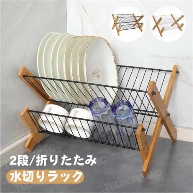 折りたたみ ディッシュラック 食器 水切りラック 折りたたみデ 2段式 ディッシュスタンド 水切りかご 食器棚 お皿立て 食器ホルダー 収納 プレート