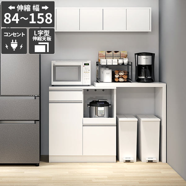 サイズ:約幅840〜1580 奥行445 高さ945 mm材質:【レンジ台】[天板・スライド棚・前板・側板]メラミン樹脂化粧合板[背板]プリント化粧合板※天板は120℃までの耐熱処理と耐水処理[取っ手]ABS樹脂【伸縮天板】メラミン樹脂化粧合板カラー:ネイル(ホワイト)※環境によって異なって見える場合がございます。重量:約57kg耐荷重:約天板50kg/スライド棚15kg/引出し3kg/棚板5kg日本製レンジ台:完成品伸縮天板:組立品可動棚2枚(3cm間隔で14段階調節可能)背面化粧仕上げ(一部タッカー留め)コンセント2口(合計1500W)伸縮天板:床キズ防止フェルト/六角レンチ付属ブランド:arne送料無料※北海道・沖縄・離島は送料別途お見積もり。【ご注意】離島・郡部など一部配送不可地域あり。配送不可地域は通常配送便での玄関渡し。吊上げ作業等が必要な場合や建物の形態による追加料金はお客様ご負担。