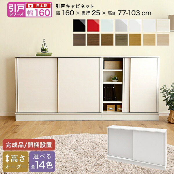 ■カウンター下収納 食器棚 完成品 引き戸 スリム 国産 設置 日本製 木製 鏡面 木目 奥行25 ロータイプ オーダー 160cm幅 薄型 キャビネッ