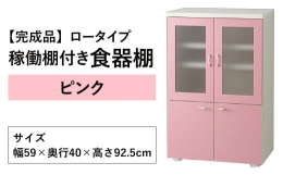 ■【ふるさと納税】【完成品】ロータイプ 稼働棚付き 食器棚 幅60cm ガラス扉(ピンク)