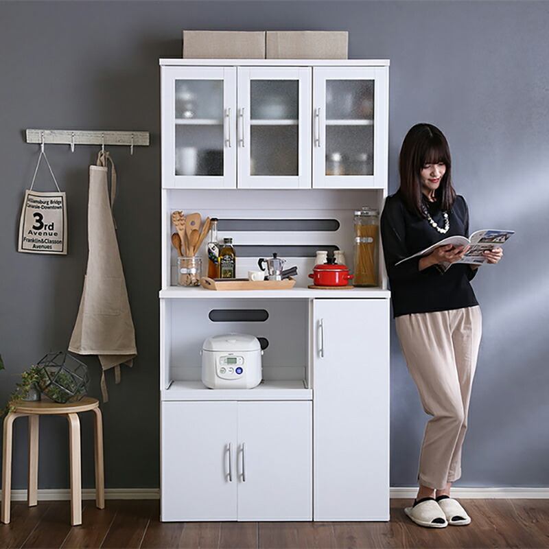 ■PAS 食器棚 幅 90cm ホワイト/全3色 幅90 奥行き41 高さ180cm ハイカウンター レンジ台 組み立て商品 キッチン収納 カップボード