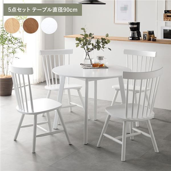 ■ダイニング5点セット テーブル直径90cm+チェア4脚 ホワイト 組立品 リビング ダイニング 天然木 脚のみ取り付け アンティーク調 デザイン