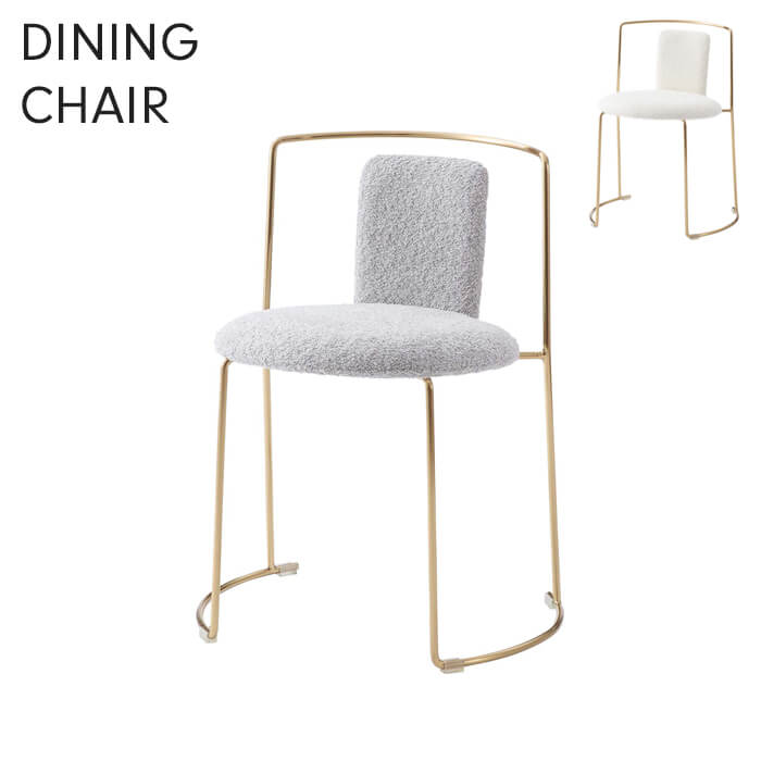特徴的な形の細身なフレームともこもこのブークレ生地が印象的なダイニングチェア。座面高は標準よりやや高めの48cmでたち座りの動作が比較的楽になるため、頻繁に離着席する方にもおすすめ。キーワード: チェア 椅子 ダイニングチェア 曲線 1人掛け リビングチェア 単品 背もたれ 軽量 デザイン 高級感 モダン おしゃれ ゴールド フロアチェア イス チェアー シンプルチェア 椅子のみ デスクチェア シンプル 背もたれ アームレス コンパクト 省スペース 個性的 完成品 ダイニング リビング