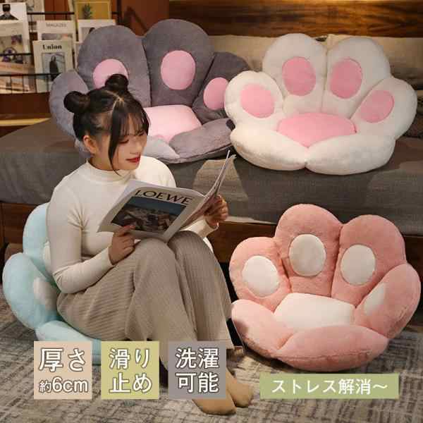 ■【ポイント10倍!】座布団 クッション 丸型 デザイン 猫 ネコ 猫の手 肉球 癒す 椅子 チェア チェアパッド 和室 洋室 北欧 家庭用 業務用