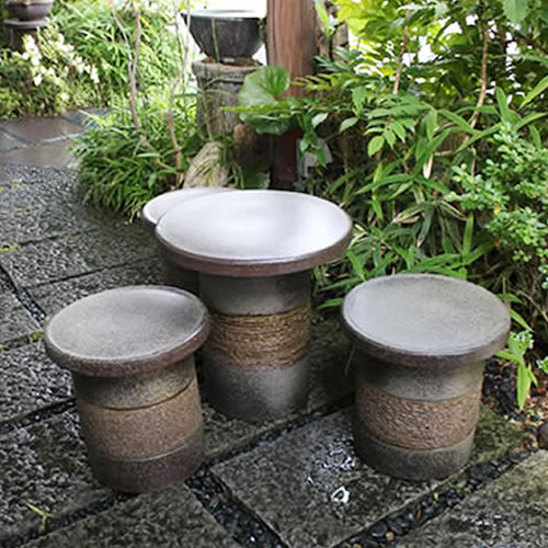 ■ガーデンテーブルセット 陶器 【送料無料】 20号ガーデンテーブル 物 お庭、ベランダ用庭園セット 信楽焼 おしゃれ 和風【手作り】
