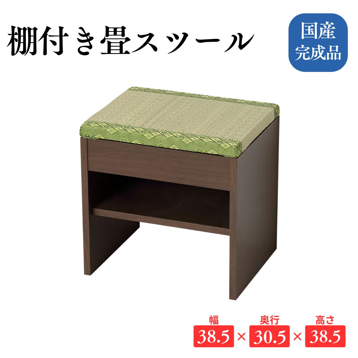 ■国産 棚付き畳スツール 畳座面 チェア 腰掛け 収納付き サイドテーブル 和風 天然い草 小物収納 日本製 おしゃれ