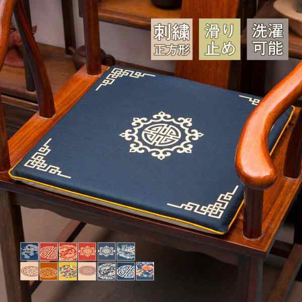 ■【ポイント5倍!】座布団 クッション 正方形 デザイン 刺繍 花 龍 上品 高級感 薄手 チェア チェアパッド 茶室 和室 洋室 北欧 家庭用 業