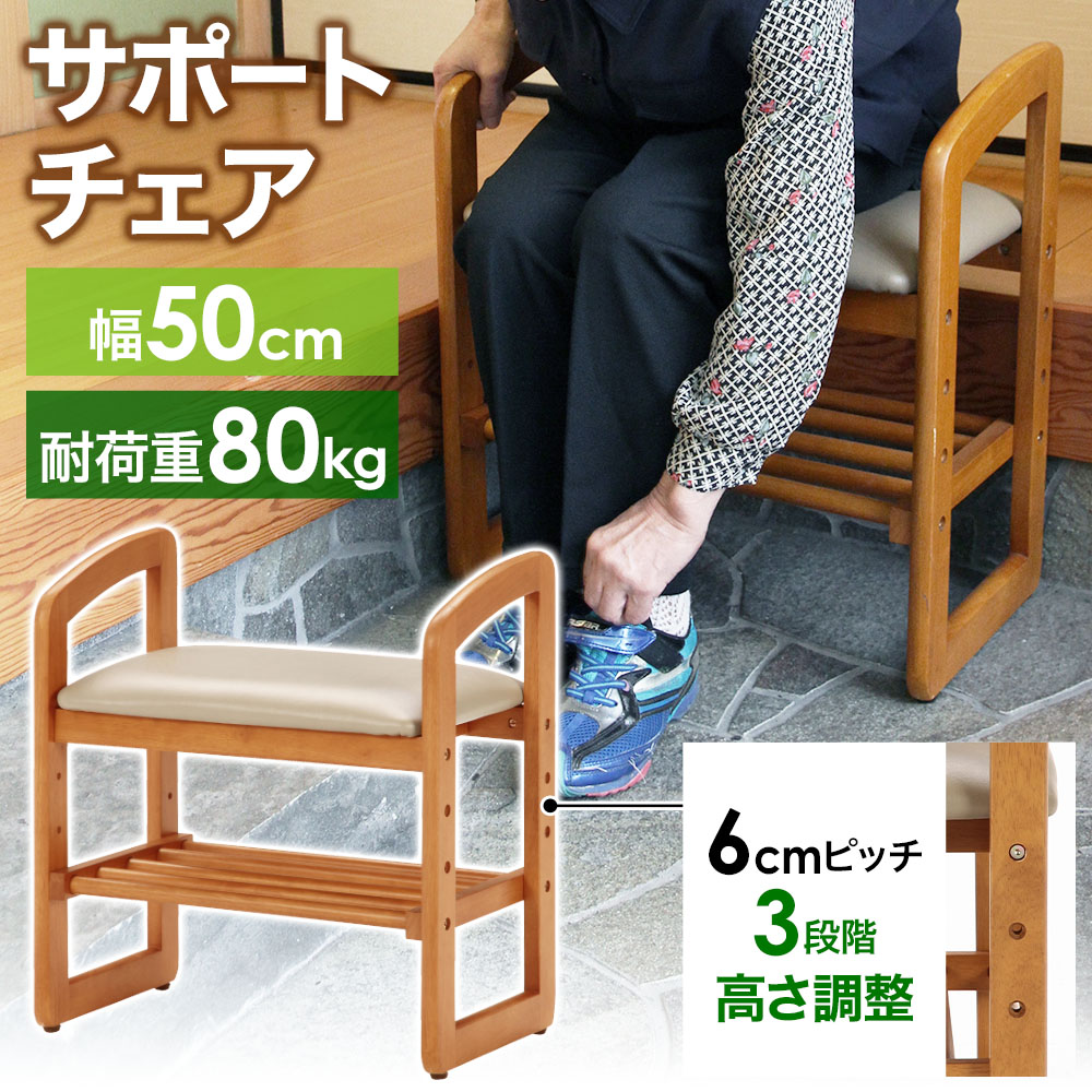 ■送料無料 幅50 サポートチェア スツール 玄関スツール チェア 掴り椅子 つかまり ラクラク便利 シューズラック 腰掛 玄関 高さ調節 シュ