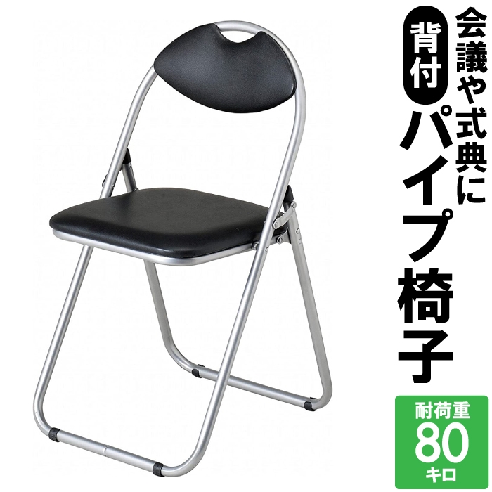 ■【値下げ】パイプ椅子 折りたたみ 背面付き チェア イス 四角 イス 軽量 シンプル スタンダード コンパクト 式典 会議 ブラック 黒色