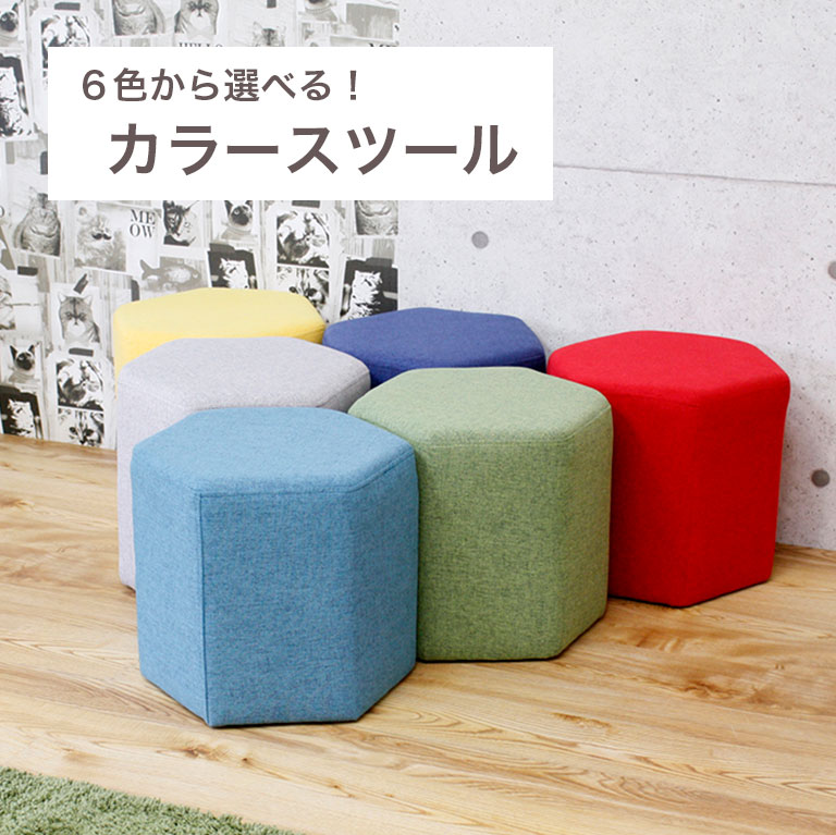 ■スツール イス 腰掛け チェア カラースツール カラフル 椅子 オットマン ファブリック 六角形 かわいい ユニーク 子供 おしゃれ シンプル