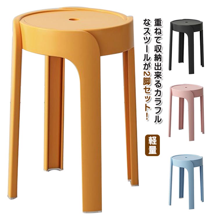 ■スタッキング スツール 2脚セット スタッキングチェア 椅子 シンプル 北欧 丸椅子 円形 チェア ダイニングチェア 丸いす 軽量 積み重ね