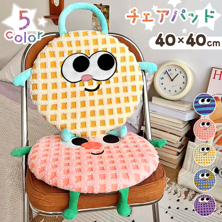■新作 選べる5種類40×40cmカラフルキャラクターチェアパッド 椅子 イス クッション 座布団 チェアパッド チェアクッション 40×40 目玉