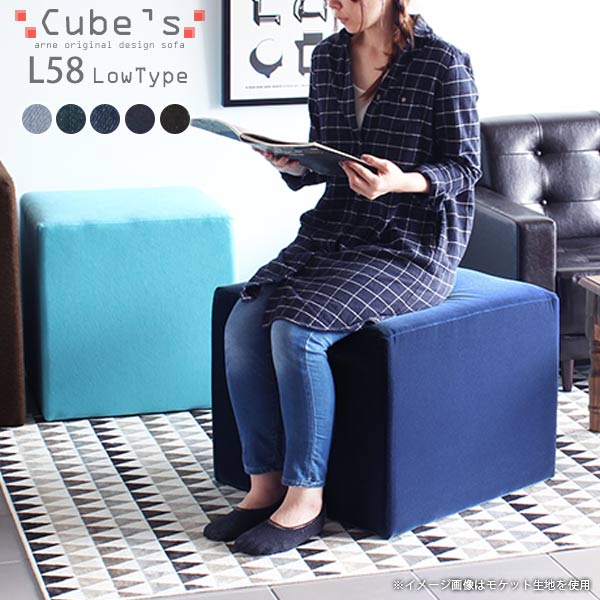 ■ロースツール ミニスツール オットマン 荷物置き スツール チェア ソファ 北欧 おしゃれ ソファー デニム 青 Cube's L58 □