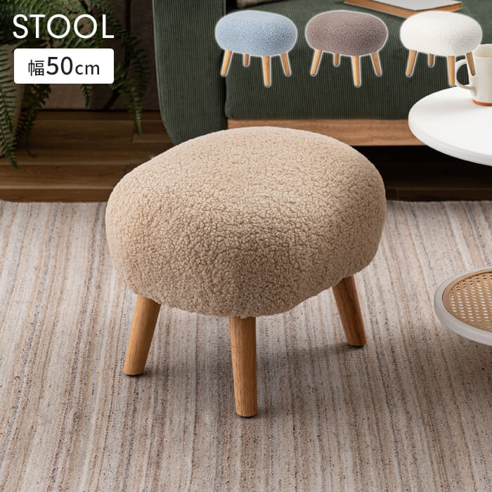 シンプルながら遊び心のある、ころんと丸いフォルムが特徴的でかわいらしいスツール。◇優しい色味のブークレ生地とナチュラルな木脚の組み合わせは、様々なお部屋に取り入れやすく空間のアクセントにもぴったり。◇今にもトコトコと歩き出しそうなころんと丸いフォルムが魅力的。◇しっかりとした座り心地。◇場所を取らずリラックスして座れる少し低めの座面。◇ずっと触っていたくなる、もこもことした柔らかい感触のブークレ生地を使用。◇スツールとしてだけでなく、ソファと組み合わせてオットマンとしても。◇脚裏にアジャスターが付いているので、座る際のガタつきを調整。キーワード: スツール 丸椅子 ラウンド 腰掛 イス オットマン ブークレ生地 天然木 円形 チェア 簡易椅子 アームレス 肘無し 背もたれなし 木脚 ファブリック おしゃれ かわいい 来客 コンパクト 省スペース 無地 北欧 1人掛け リビング 玄関 シンプル ベージュ ナチュラル