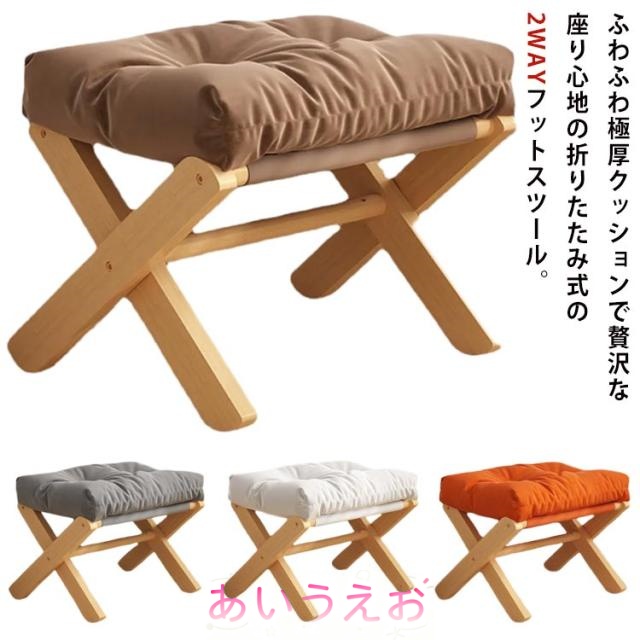 オットマン チェア 折りたたみ スツール フットスツール 足置き 腰かけ 脚置き 収納 オットマンチェア ベンチ 椅子 いす 木製 北欧 一人掛け 極厚 クッション 玄関 イス リビング おしゃれ 飾り台 待合室 休憩室