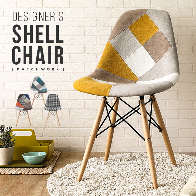 ■チェア 送料無料 北欧 リメイク 木足 パッチワーク DSW チェアー 椅子 木製脚 シェルチェア 新生活