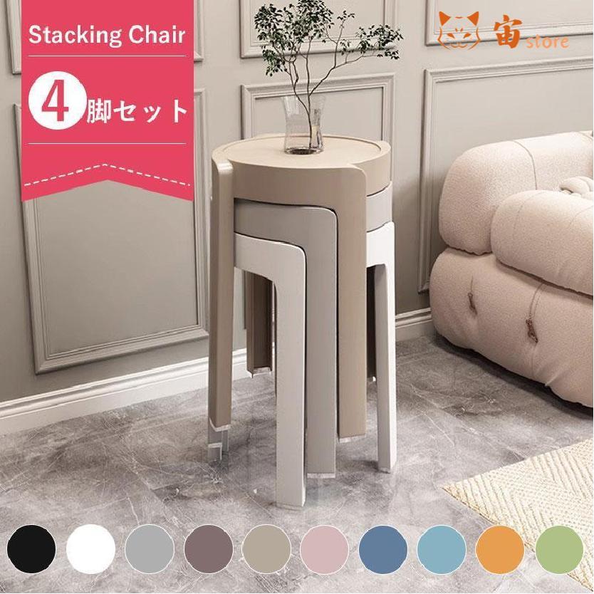 ダイニングチェア スツール おしゃれ 4個セットインテリア 椅子 チェア 積み重ね ファッション シンプル 北欧 全10色 省スペース ホーム用 収納可能 丸椅子