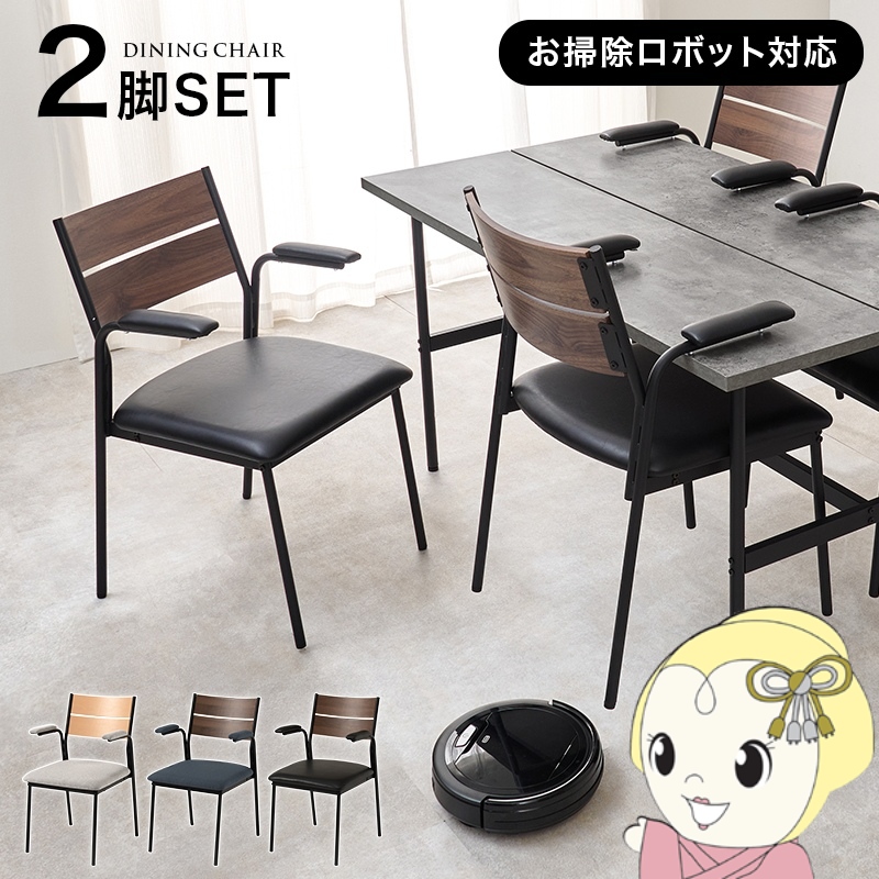 ■ダイニングチェア 椅子 2脚セット おしゃれ 北欧モダン 肘掛け ミッドセンチュリー レトロ いす イス 合成皮革 レザー調 ブラウン×ブラ