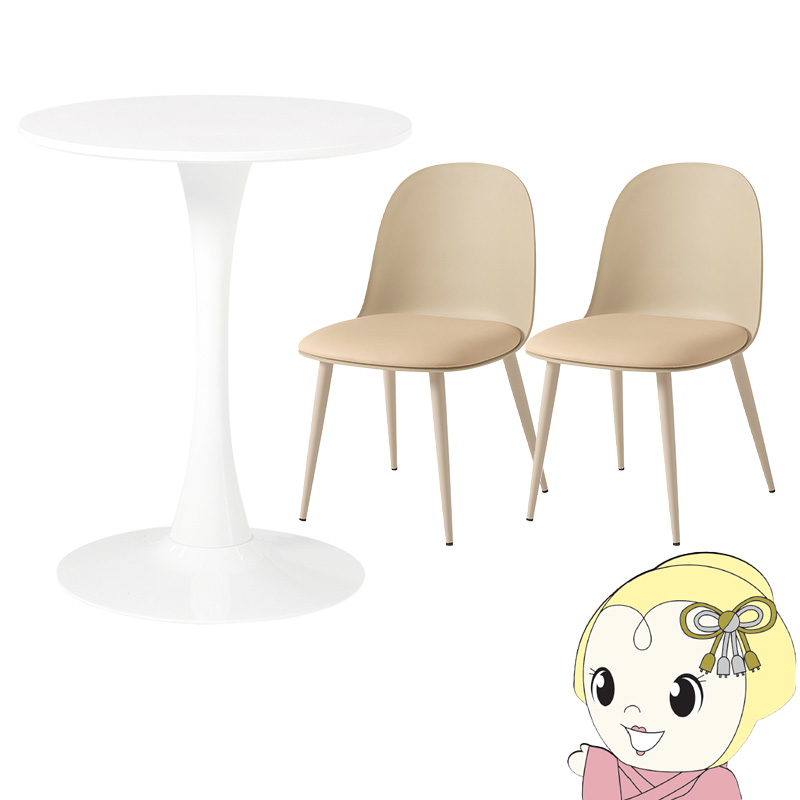 ■ダイニングテーブルセット 2人用 円形 丸 韓国風 ミッドセンチュリー おしゃれ 食卓 カフェ デスク 机 60cm ホワイト/ベージュ