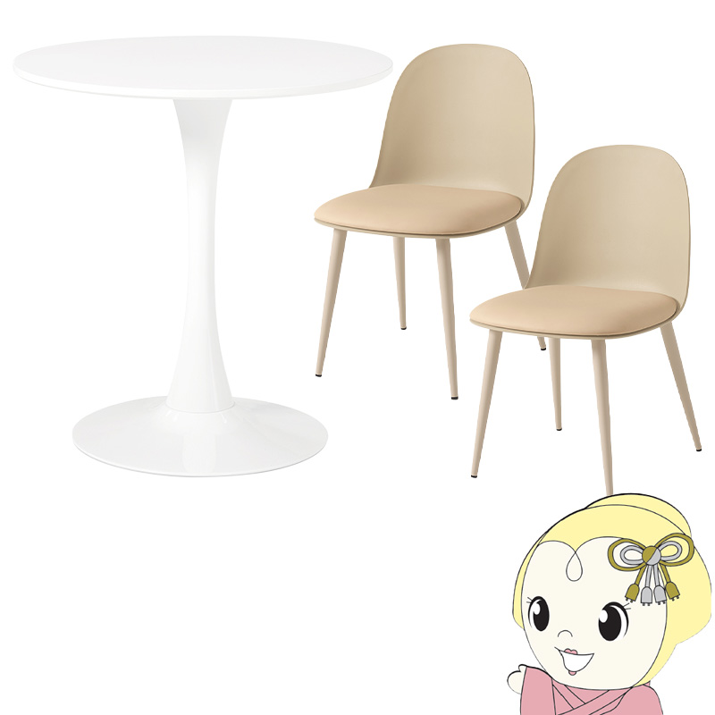 ■ダイニングテーブルセット 2人用 円形 丸 韓国風 ミッドセンチュリー おしゃれ 食卓 カフェ デスク 机 70cm ホワイト/ベージュ