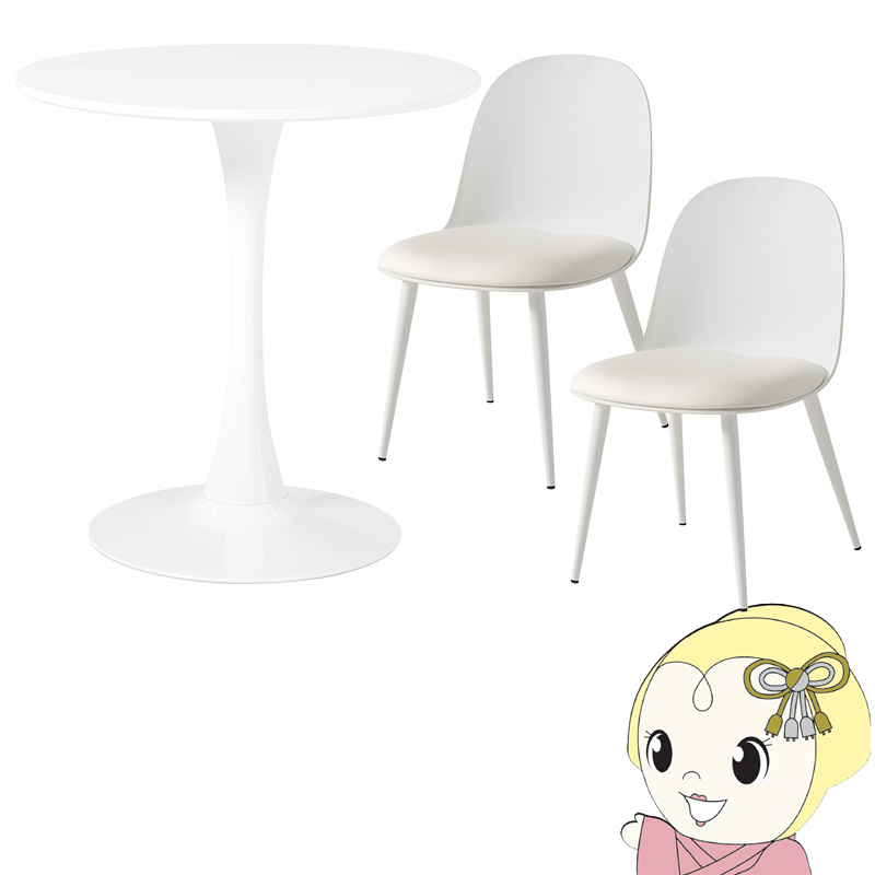 ■ダイニングテーブルセット 2人用 円形 丸 韓国風 ミッドセンチュリー おしゃれ 食卓 カフェ デスク 机 70cm ホワイト/ホワイト