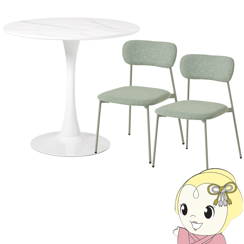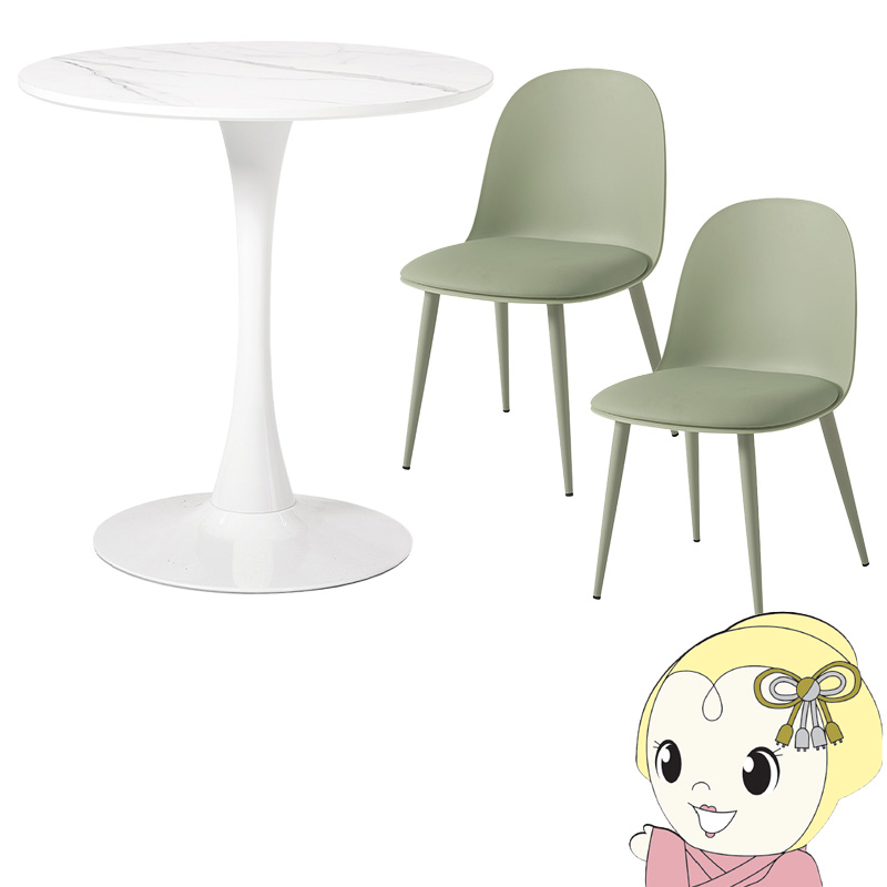 ■ダイニングテーブルセット 2人用 円形 丸 韓国風 ミッドセンチュリー おしゃれ 食卓 カフェ デスク 机 60cm ホワイト/グリーン