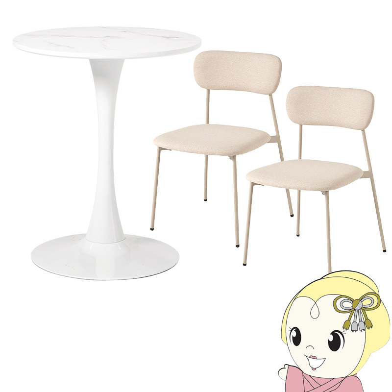 ■ダイニングテーブルセット 2人用 円形 丸 韓国風 ミッドセンチュリー おしゃれ 食卓 カフェ デスク 机 60cm ホワイト/ベージュ