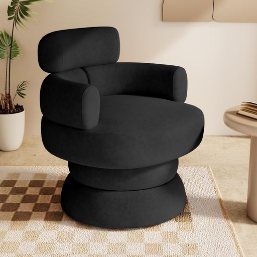 ■ミッドセンチュリー モダンデコ 椅子 ソファー 1人掛け チェア 高級ベルベットの丸型バレル リラックスチェア 回転座椅子 360度 回転 背