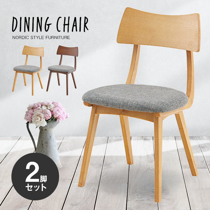 ■【2脚セット】ダイニングチェア 木製 天然木 アッシュ ウォルナット 椅子 いす 肘なし 背もたれ クッション ファブリック 布張り ナチュ