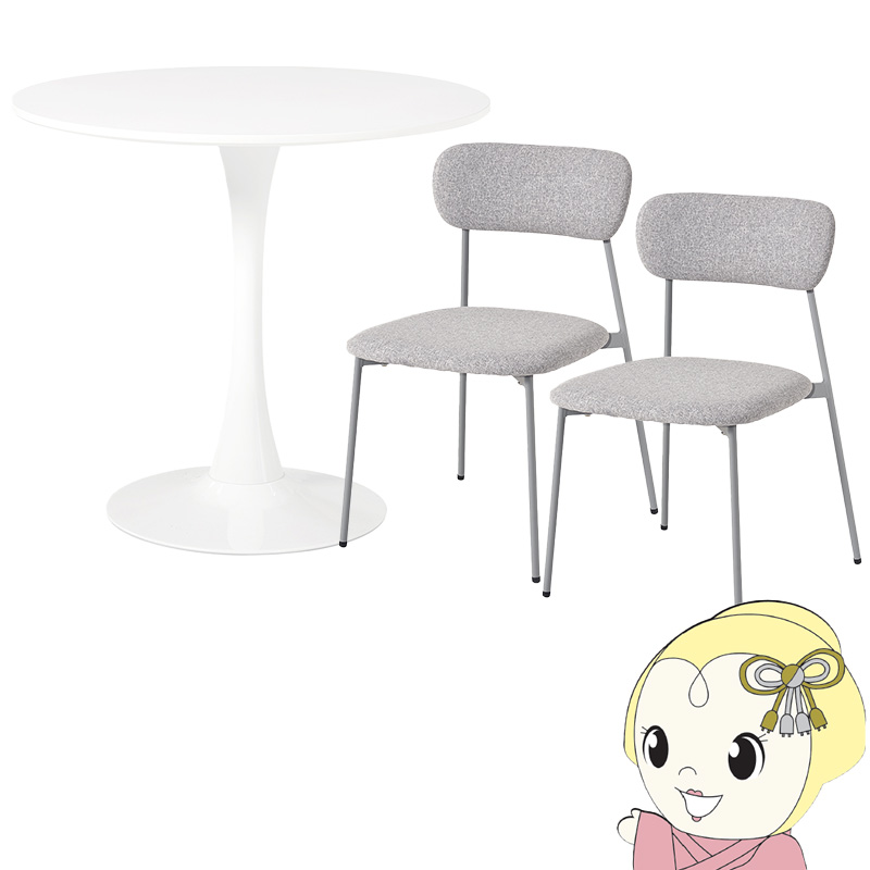 ■ダイニングテーブルセット 2人用 円形 丸 韓国風 ミッドセンチュリー おしゃれ 食卓 カフェ デスク 机 80cm ホワイト/グレー