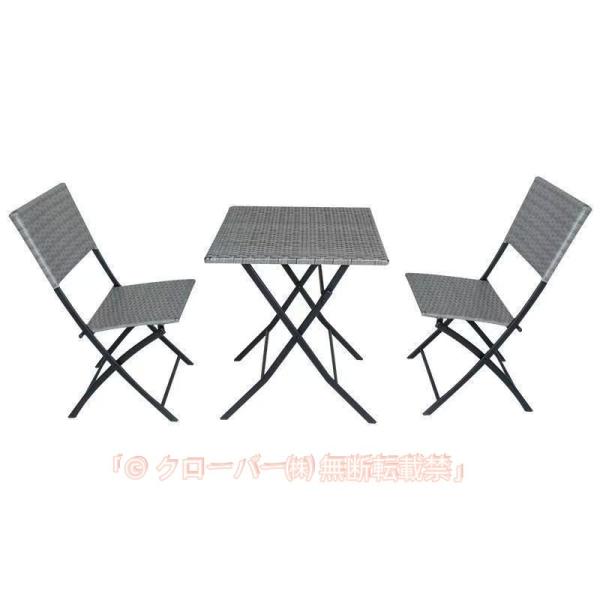 ■ガーデンテーブル チェア グレーの 屋外ガーデンチェアセット ガーデン 3点セット 折りたたみ ベランダのテーブルと椅子 カジュアル 中庭