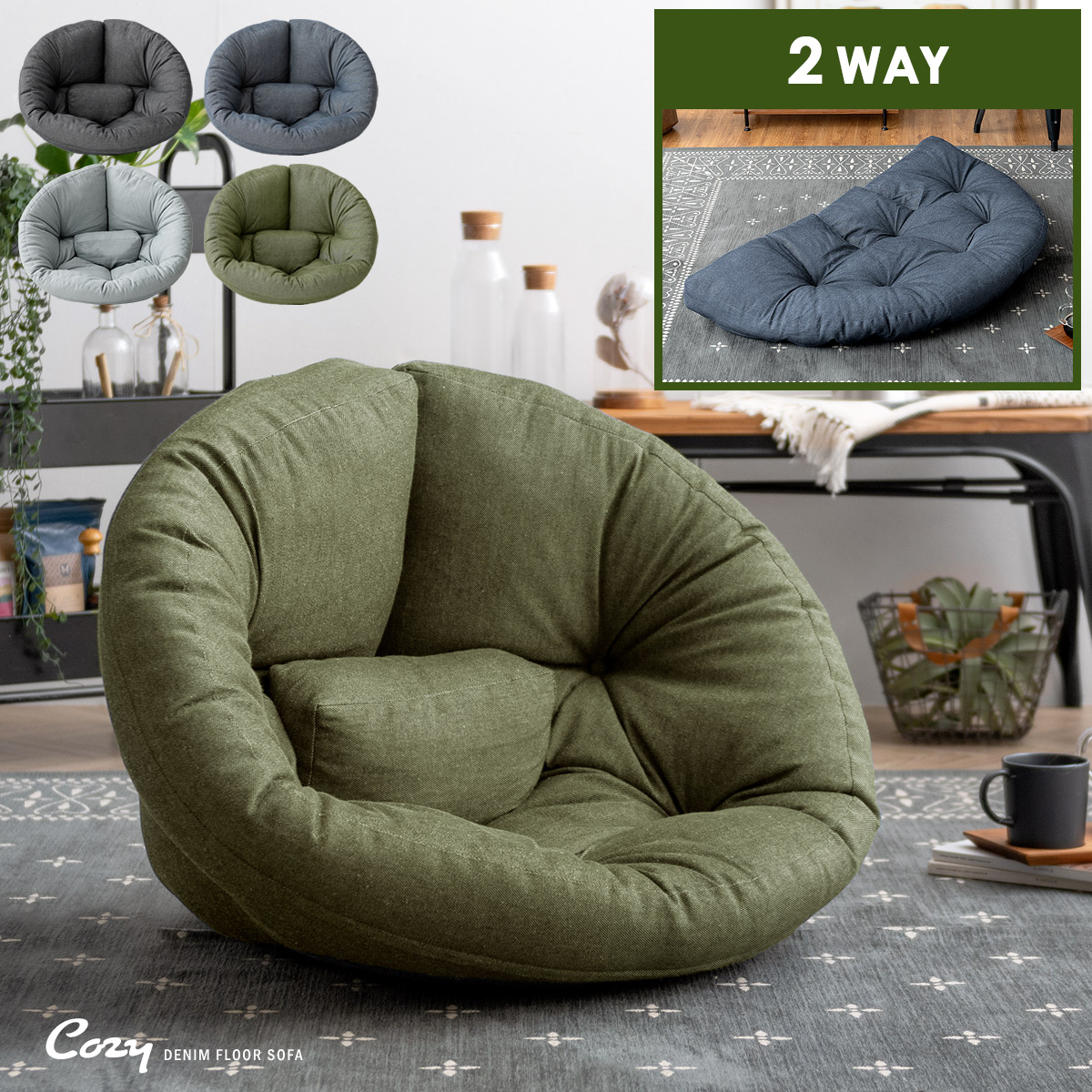 ■フロアクッション クッション フロアソファ ごろ寝 マット デニムグレー ネイビー おしゃれ モダン 北欧 シンプル カジュアル ヴィンテー