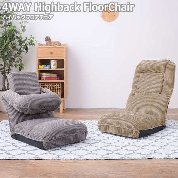 ■4WAY Highback FloorChair ハイバックフロアチェア (フロアチェア 座椅子 リクライニング ハイバック 1P グレー ベージュ カジュアル ナ