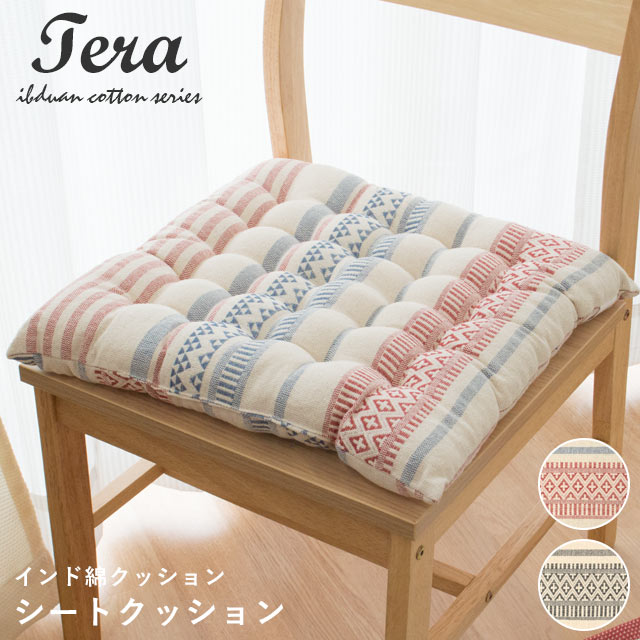 ■クッション テラ TERA 約40×40cm シートクッション インド綿100% ボーダー カジュアル シート ナチュラル ヴィンテージ 座布団