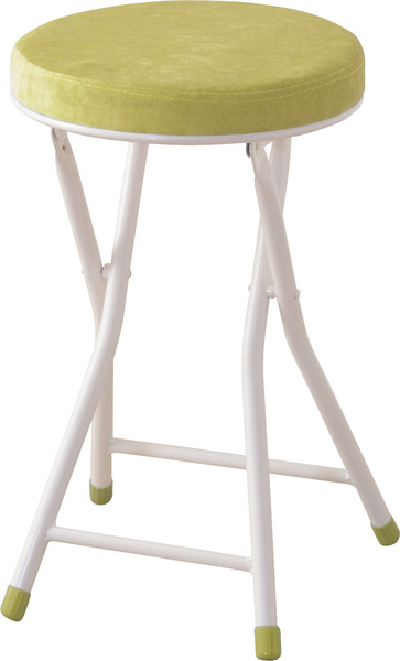 W30×D30×H49(折りたたみ時:W30×D9×H70)グリーン●座り心地の良い厚みのある座面。●程よく弾力があるので、いつまでも座っていられる座り心地。●脚を広げた状態で持ち上げても脚が閉じないよう、座面下にバネ式のロック付き。●折りたたみ式なので使わない時はすっきりとコンパクト収納。●リビング、ダイニング、キッチン、洗面所、玄関周りのちょっとした隙間に収納可能。●軽量仕様なのでお掃除の時の移動や持ち運びもらくらく。●座面には手触りが良く高級感のあるベロア調生地を使用。●座面サイズは30cmと使いやすいサイズ。来客用に、作業用に、ちょっと休憩用に便利なサイズ。●脚先キャップが付いているので床への傷防止にもなり安心。スツール 丸スツール 腰掛け 椅子 北欧 カジュアル シンプル 隙間収納 コンパクト 折りたたみスツール フォールディングチェア カウンターチェア バーチェア パソコンチェア コンパクト PCチェア クッション ロンダ キャップ付き ロック付 スチール レッド イエロー ベージュ グリーン グレー ブラック