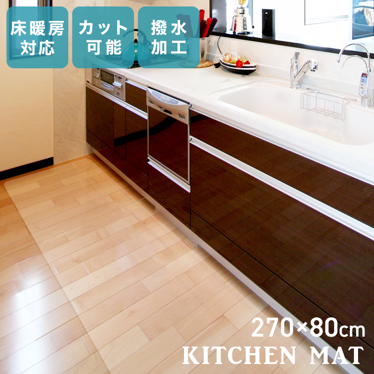 ■キッチンマット 270 透明 80×270cm PVC エンボス加工 クリアマット 拭ける 洗える キッチン マット クリア 防水 床暖房対応 抗菌 防カビ