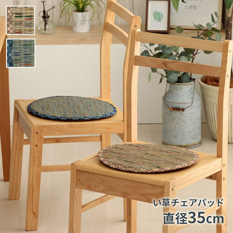 ■チェアパッド 夏用 椅子 シートクッション 丸型 38cm い草 おしゃれ チェック柄 滑り止め付き