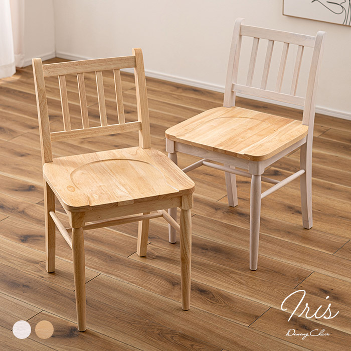 無垢材の明るい木目と、シンプルな装飾が美しい、フレンチカントリー風ダイニングチェア。 天然木を活かしたクリア塗装とフレンチカントリー風デザインの「IRISイリス」シリーズ。 美しいテーパードレッグがおしゃれなダイニングチェアです。 一つ一つ木目の表情に個性のある天然木を贅沢に使用した、イギリスやフランスのチャーチチェアのようなアンティーク風デザイン。しっかりとした背もたれと掘り込み加工の座面で快適な座り心地です。 丈夫な構造ながらも、約5.5kgと軽量で、ダイニングではもちろん、来客やデスクワーク、お掃除など、シーンに合わせて簡単に持ち運びができます。 ホワイトとナチュラルの2種類のカラーをご用意しました。 イリスシリーズのテーブルやお気に入りのデスクなどとコーディネートしてお楽しみください。 カントリースタイルはもちろん、韓国風、北欧風などのインテリアにもなじみ、ナチュラルで品のある空間を演出します。 ※ダイニングチェア単品となります。 ※天然木の特性として、木目や節の風合い・色味などに個体差があり、画像と異なる場合がございます。