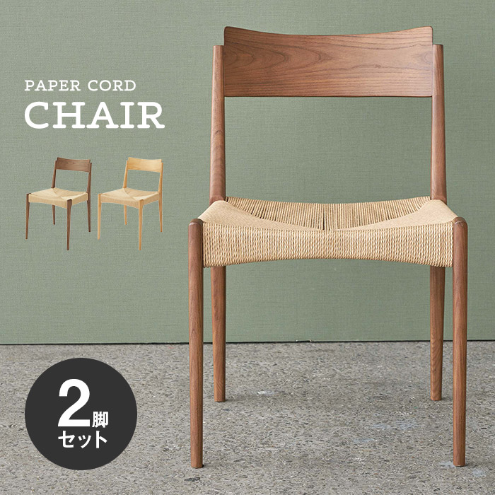 ■[お得な2脚セット]ペーパーコードチェア 木製ダイニングチェア 椅子 いす デスクチェア 無垢材 肘なし アームレス 背もたれ 軽量 軽い ヴ
