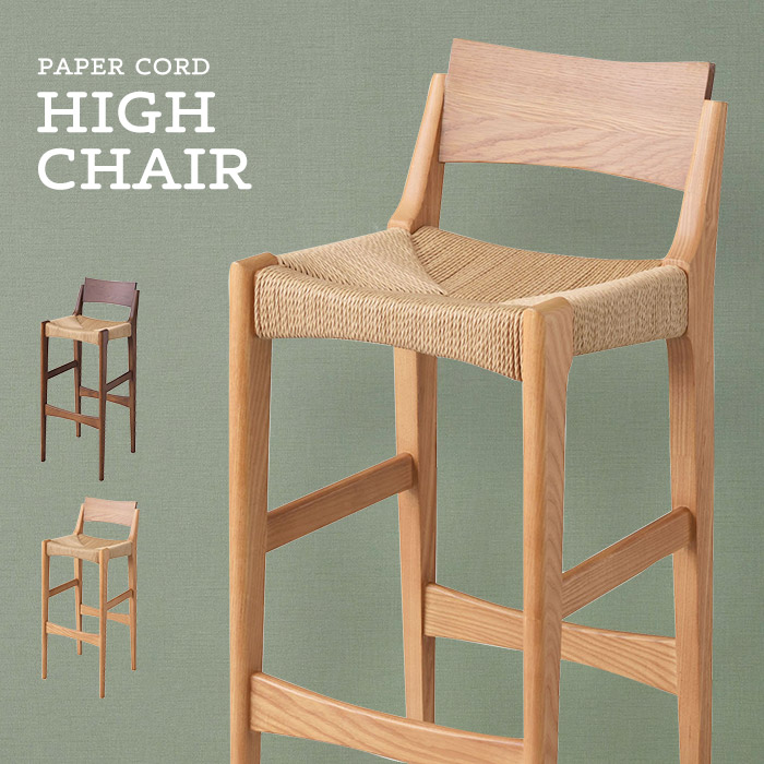 ■ペーパーコードハイチェア 木製 カウンターチェア ハイスツール 座面高70cm バーチェア 椅子 いす 高め 背もたれあり 軽量 軽い シンプル