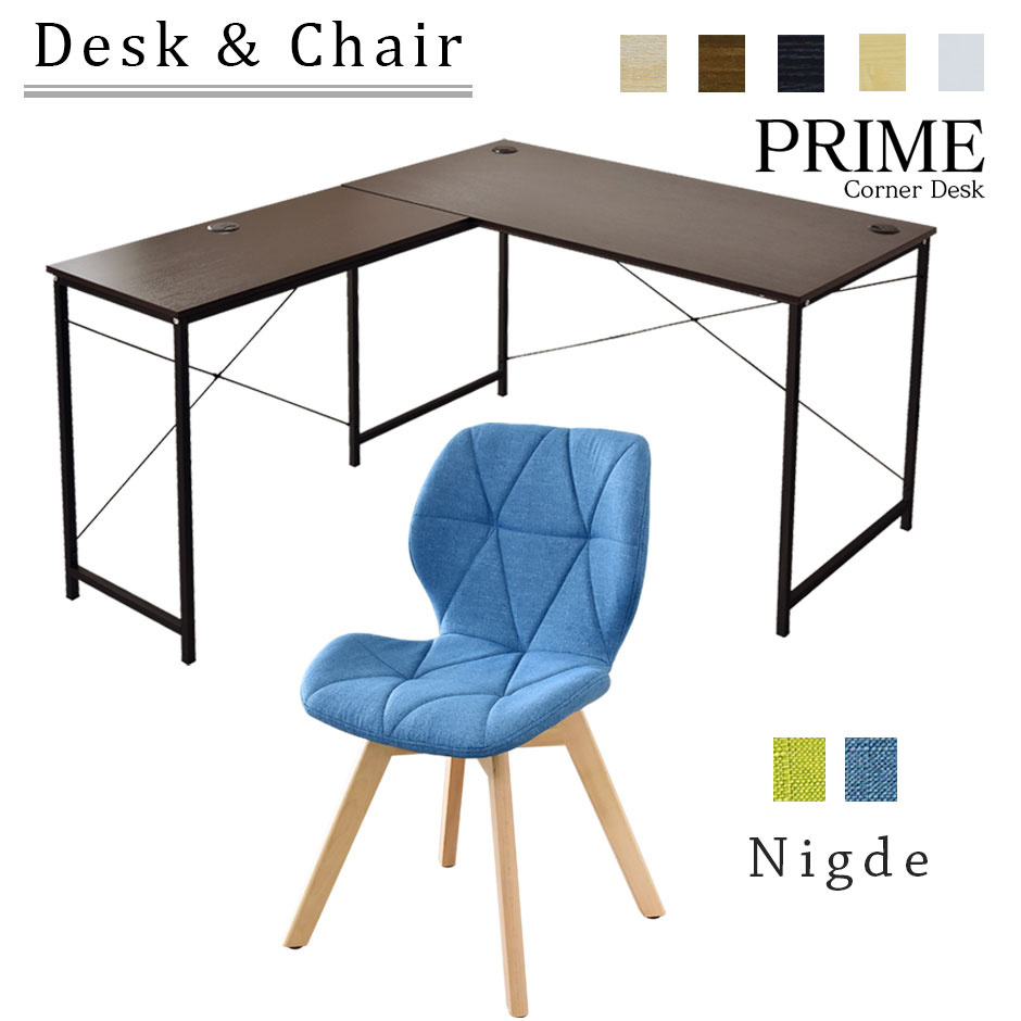 ■パソコンデスク オフィスチェア セット デスク チェア 在宅 テレワーク PC おしゃれ デザイナーズ コンパクト 北欧 L字 プライム ニー