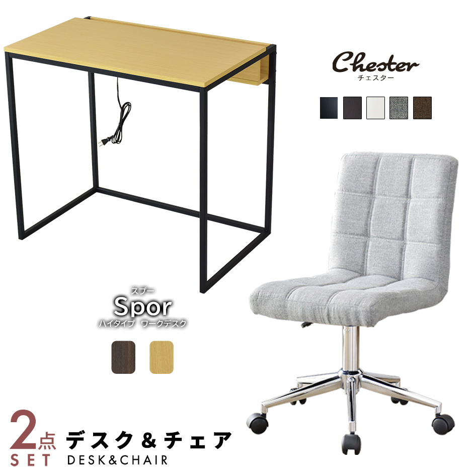 【配送につきまして】◆北海道・沖縄・離島は別途送料お見積りとなります。■商品名:スプーハイタイプ & チェスター■本体サイズ【スプーハイタイプ】幅80×奥行51.5×高さ74(cm)【チェスター】幅43.5×奥行56×高さ83.5〜95.5(cm) 座面高46〜58(cm)※個体差により若干の差異あり■梱包サイズ【スプーハイタイプ】約幅85×奥行55×高さ6.5(cm)【チェスター】約幅57×奥行48×高さ44(cm)■材質【スプーハイタイプ】表面加工:メラミン加工構造部材:合成樹脂化粧繊維板・スチールパイプ(粉体塗装)【チェスター】【ファブリック】ポリエステル 【PUレザー】ポリウレタン積層合板・脚:金属■本体重量【スプーハイタイプ】約11.5kg【チェスター】約7kg■耐荷重【スプーハイタイプ】天板 20kg/棚 10kg/中板 2kg【チェスター】90kg■総重量(梱包材含む)【スプーハイタイプ】約13kg【チェスター】約9kg