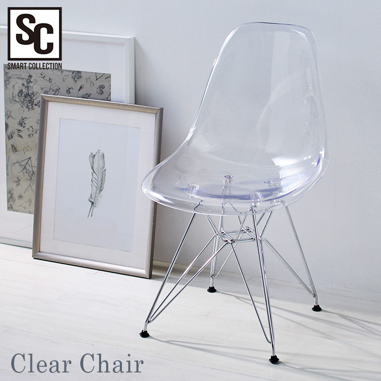 ■椅子 チェア デザインチェア 肘なし ステンレス脚 クリア EPC-47 いす チェアー デザイナーズ おしゃれ 北欧 イームズ風 モダン 透明 ス