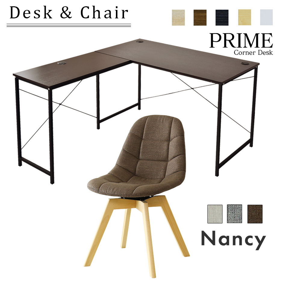 ■パソコンデスク オフィスチェア セット デスク チェア 在宅 テレワーク PC おしゃれ デザイナーズ コンパクト 北欧 L字 プライム ナンシ