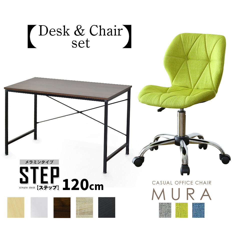 【配送につきまして】◆北海道・沖縄・離島は別途送料お見積りとなります。■商品名:ステップ メラミンタイプ120cm×60cm & ムーラ【Step 120 60 & Mura】■本体サイズ【ステップ メラミンタイプ120cm×60cm】約幅120×奥行60×高さ74(cm)【ムーラ】約幅47×奥行55×高さ77(77〜88.5)×座面高44(44〜55.5)(cm)■梱包サイズ【ステップ メラミンタイプ120cm×60cm】約幅123×奥行61.5×高さ9(cm)【ムーラ】約幅56×奥行36×高さ52(cm)■材質【ステップ メラミンタイプ120cm×60cm】合成樹脂化粧パーティクルボード(メラミン加工)【ムーラ】ポリエステル・積層合板・金属・ウレタンフォーム■本体重量【ステップ メラミンタイプ120cm×60cm】約15.5kg【ムーラ】約7.5kg■耐荷重【ステップ メラミンタイプ120cm×60cm】約40kg【ムーラ】約90kg■総重量(梱包材含む)【ステップ メラミンタイプ120cm×60cm】約16.5kg【ムーラ】約9kg