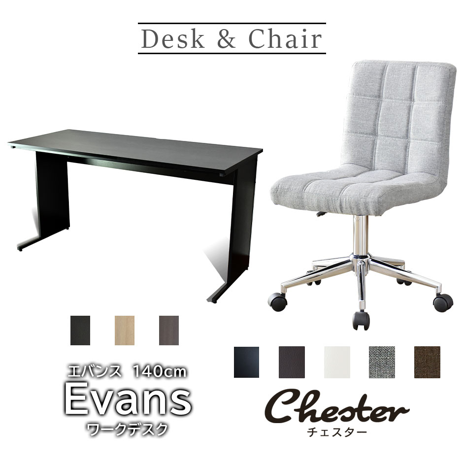【配送につきまして】◆北海道・沖縄・離島は別途送料お見積りとなります。■商品名:エバンス140cm & チェスター【evans 140 & Chester】■本体サイズ【エバンス140cm】約幅140×奥行60×高さ72(cm)【チェスター】約幅43.5×奥行56×高さ83.5(83.5〜95.5)×座面高46(46〜58)(cm)■梱包サイズ【エバンス140cm】約幅147×奥行65×高さ10.5(cm)【チェスター】約幅57×奥行48×高さ44(cm)■材質【エバンス140cm】パーティクルボード、スチールパイプ【チェスター】ポリエステル、ポリウレタン、積層合板、金属、ウレタンフォーム■本体重量【エバンス140cm】約22kg【チェスター】約7kg■耐荷重【エバンス140cm】約50kg【チェスター】約90kg■総重量(梱包材含む)【エバンス140cm】約23.5kg【チェスター】約9kgご予約商品をご購入の場合、au PAYゆったり後払いはご利用になれません。他のお支払方法をご選択ください。