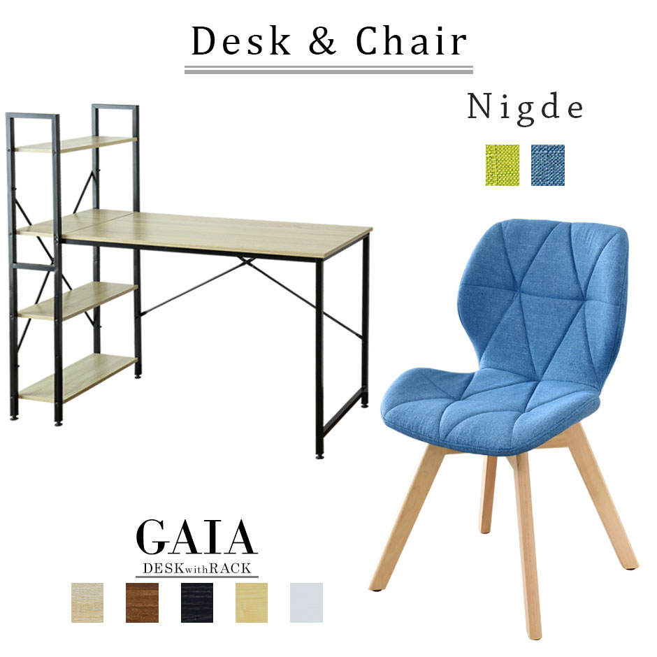 ■パソコンデスク オフィスチェア セット デスク チェア 在宅 テレワーク ラック 書棚 PC おしゃれ デザイナーズ コンパクト 北欧 ガイア