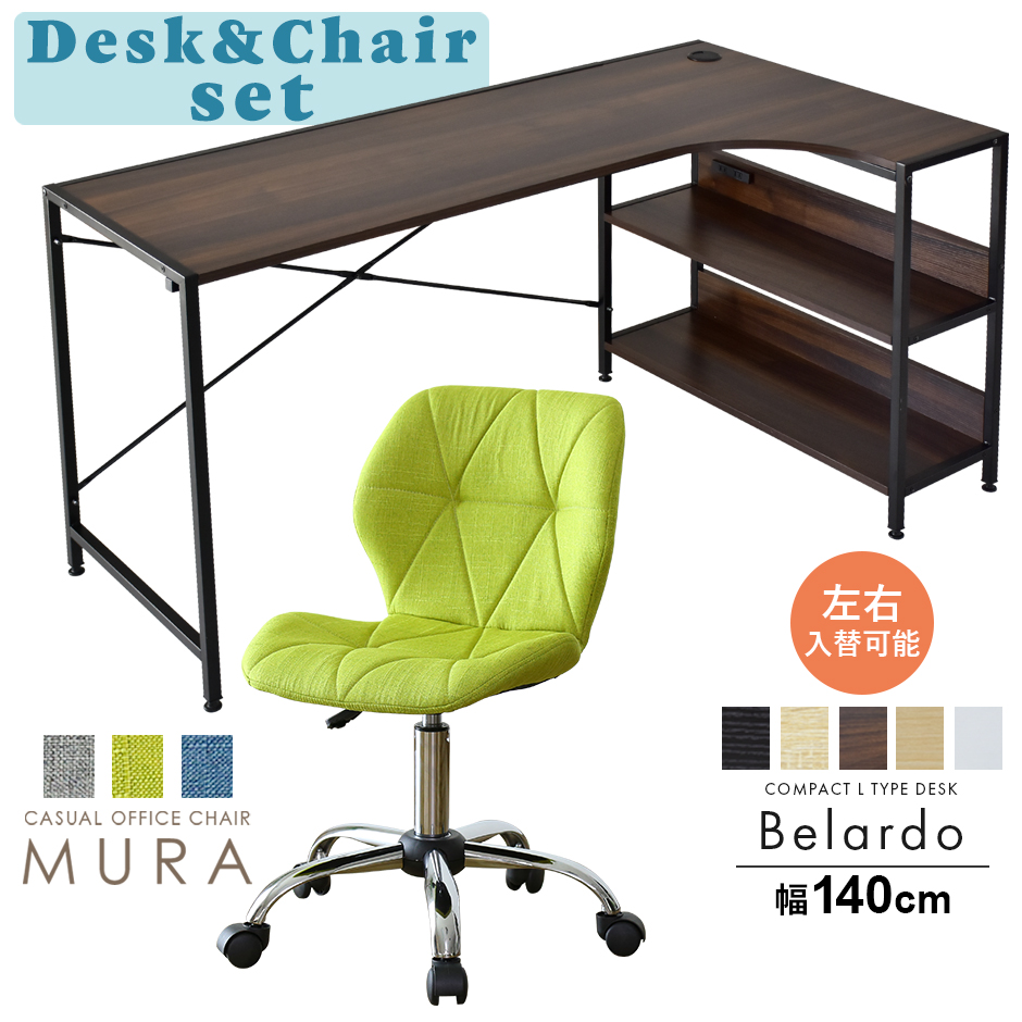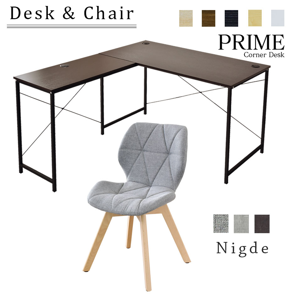 ■パソコンデスク オフィスチェア セット デスク チェア 在宅 テレワーク PC おしゃれ デザイナーズ コンパクト 北欧 L字 プライム ニー