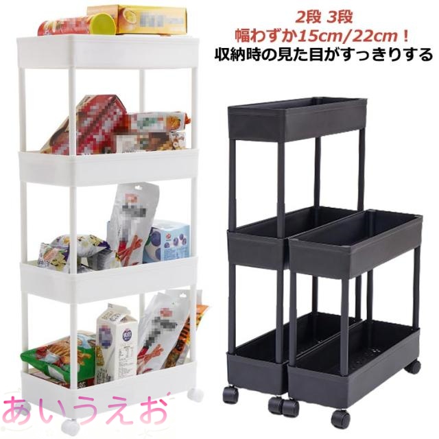 すき間収納ワゴン スリムトローリー 幅 15cm 22cm 2段 3段 ワゴン すき間 収納 すきま スリム 隙間 隙間ラック 送料無料 収納ワゴン キャスター付き スリム収納 収納ラック コンパクト キッチン隙間収納 洗面所 キッチンワゴン ストック収納 冷蔵庫 横 冷蔵庫横